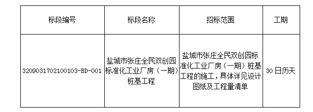本招標(biāo)項目鹽城市張莊全民雙創(chuàng)園標(biāo)準(zhǔn)化工業(yè)廠房已由鹽城市鹽都區(qū)發(fā)展和改革委員會以關(guān)于鹽城市張莊全民雙創(chuàng)園建設(shè)投資有限公司建設(shè)張莊全民雙創(chuàng)園標(biāo)準(zhǔn)化工業(yè)廠房項目備案的通知-都發(fā)改審(2016)281號批準(zhǔn)建設(shè)。招標(biāo)人為鹽城市張莊全民雙創(chuàng)園建設(shè)投資有限公司,工程所需資金來源自籌。項目已具備招標(biāo)條件,現(xiàn)對該項目的鹽城市張莊全民雙創(chuàng)園標(biāo)準(zhǔn)化工業(yè)廠房(一期)樁基工程進行公開招標(biāo)。本次招標(biāo)對投標(biāo)報名人的資格審查,采用資格后審方法選擇合格的投標(biāo)申請人參加投標(biāo)。