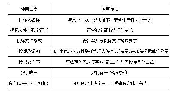 對招標(biāo)文件要求的工期、質(zhì)量、投標(biāo)保證金、履約擔(dān)保、投標(biāo)有效期、暫定價、不可競爭費用等實質(zhì)性要求的響應(yīng)性進行評審。