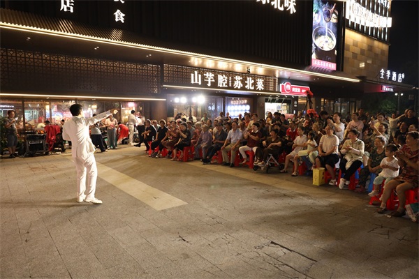 “瀆上·老西門”新時代文明實踐街區(qū)自開街以來一直是市民們享受夜間文化生活的新潮聚集地。入夏后,鹽都區(qū)精準對接群眾需求,因地制宜組織了一系列高顏值、高品位、高質(zhì)量的夜間文明實踐活動。“登瀛老茶館”安排了各類經(jīng)典劇目,讓喜歡傳統(tǒng)戲曲的群眾過足癮;露天劇場喚起大家童年美好記憶,同時展示了中國幾代人拼搏奮斗的記憶;騰飛書局擁有豐富的閱讀資源開展全民閱讀,積極打造本地文化名片。