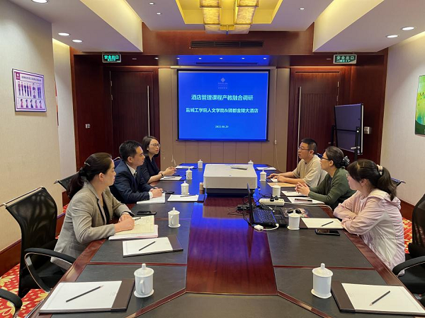 8月29日下午,鹽城工學(xué)院人文社會科學(xué)學(xué)院酒店管理系劉鵬、葛江徽老師來到驛都大酒店就產(chǎn)教融合開展座談與實地調(diào)研,酒店人力資源總監(jiān)蔡秀霞、房務(wù)總監(jiān)唐家奎、餐飲總監(jiān)蔡萍參加了調(diào)研交流活動。