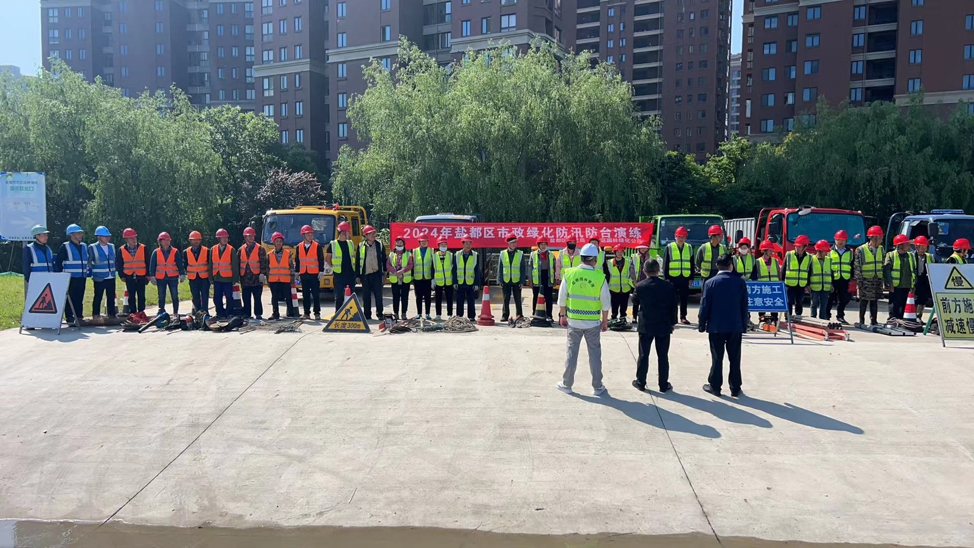 為做好汛前防汛隱患排查整治工作,從源頭上防范化解重大安全風險,檢驗防臺抗汛搶險能力,5月9日,區(qū)住建局及鹽都園林綠化公司數(shù)支專業(yè)隊伍在藍海路合作開展了2024年鹽都區(qū)市政綠化防汛防臺演練活動。