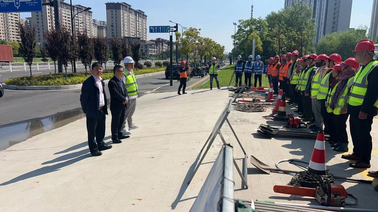 本次演練設定了臺風過后樹木倒伏、市政積水等險情背景,巡查人員發(fā)現(xiàn)問題后,第一時間匯報指揮部,指揮部立即啟動應急預案,應急隊伍在周邊設置防護安全措施,引導行人車輛通行,同時對倒伏樹木、積水路段進行全面檢查,做好后續(xù)疏通恢復。