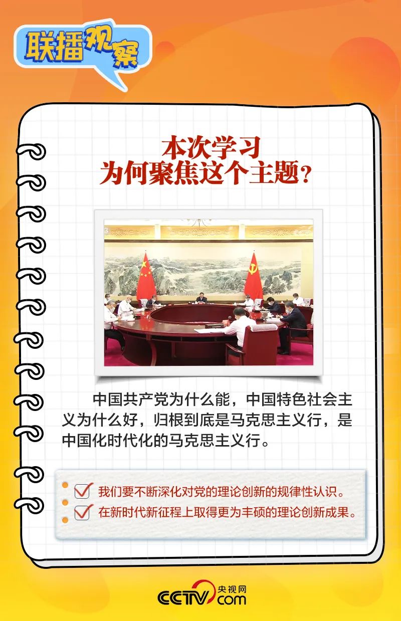 6月30日,中共中央政治局進(jìn)行第六次集體學(xué)習(xí)。黨的二十大以來,中共中央政治局每次學(xué)習(xí)都會聚焦不同主題,此次學(xué)習(xí)內(nèi)容主題為“開辟馬克思主義中國化時(shí)代化新境界”。習(xí)近平總書記在主持學(xué)習(xí)時(shí)強(qiáng)調(diào),開辟馬克思主義中國化時(shí)代化新境界的重大任務(wù),是當(dāng)代中國共產(chǎn)黨人的莊嚴(yán)歷史責(zé)任。